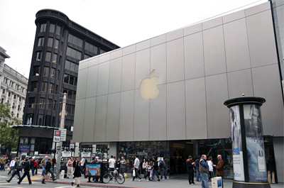 基調講演の翌日は、サンフランシスコ市内のアップルストアを訪問した。店舗は目抜き通りのマーケットストリートと4thストリートの交差点の角にある。平日の昼間にもかかわらず、店内は年齢・性別を問わずさまざまなお客で込み合っていた。