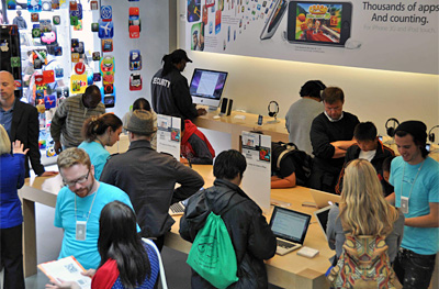 市内のアップルストアは盛況
