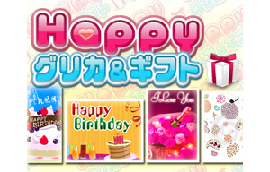 「Happy♪グリカ&ギフト」は、マイミクの誕生日や記念日など、「ハッピー」なイベント時に、グリーティングカードとギフトを贈ってお祝いすることができるアプリケーション。