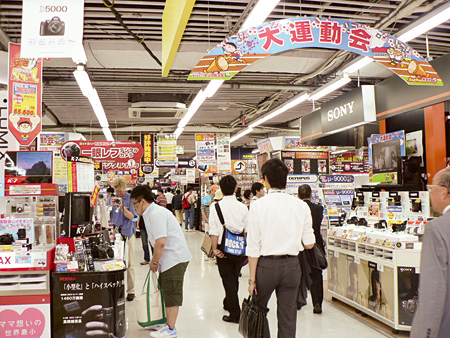 ビックカメラ有楽町店本館のデジタルカメラ売り場。平日でも多くの人々が来店する