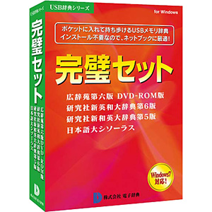 「完璧セット」は、広辞苑第六版DVD-ROM版や研究社新英和大辞典第6版、研究社新和英大辞典第5版、日本語大シソーラス、国語・英和・和英・類語の各分野から最高クラスの辞典を選りすぐり、合計約118万語を収録した特別企画製品。グループ検索機能で、すべての辞典から検索できる機能も備えている。