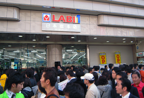 当日は、「LABI1 日本総本店 池袋」オープンの特価品を求める人々で、店舗を囲むように長蛇の列ができた。10時30分時点で店内や行列を作る人々の数は約1万5000人。正面入り口付近の歩道は、行列などの人だかりで埋め尽くされ、通行人の足を止めていた。