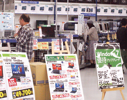 PCはエコポイントの対象外のため、白物家電に売り上げが奪われてしまったということもあり、巻き返しのために販促には力を入れている。ソフマップは、使い古したPCを下取りし、新しく購入した「Windows 7」搭載PCへデータ移行する出張サービス「買い替えサポートパック」などを揃える。