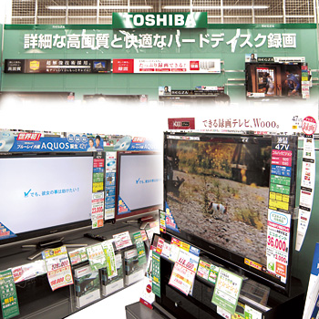 10月末、年末商戦を前に各メーカーの新製品が出揃い、「録画できるテレビ」コーナーを設置する店が増えている。例えば32V型で録画機能が付いた機種の場合、店頭価格は15万~20万円前後。録画機能が付いてない32V型のテレビとBDレコーダーを購入した場合、トータルの価格は20万円前後になる。そのため、大手家電量販店の店員は「時々録画する程度であれば、録画機能付きテレビを買ったほうが、割安なこともある」ことや、設置の手軽さなどのメリットを説明する。また、「発売されたばかりの三菱電機の機種(BHRシリーズ)は、HDDとBDレコーダーを搭載した唯一の機種で、HDDに録ったものを簡単にディスクに移すことができて便利」と、販売店やユーザーの評価が高い。