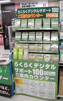 サービスメニューを本格的に強化したのは今年3月。ソフマップとビックカメラで共通のメニューを用意した。ソフマップまたはビックカメラで購入した商品について、月額750円で問い合わせに対応する「らくらくオンラインサポート」の提供を開始。オプションメニューは、メモリ増設や家庭内ネットワークなどパソコン系メニューと、地デジアンテナ設置やプロジェクタ接続などデジタル家電系メニューをそれぞれ100種類ずつ設けている。電話番号などの問い合わせ先は、顧客が混乱しないようにソフマップとビックカメラで区別してパンフレットに記載しているが、内部ではソフマップが一括して対応するなどして、ソフマップのノウハウを生かしている。