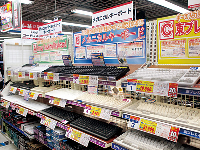 ソフマップ秋葉原本館のキーボード売り場では、来店者にPC上級者が多いことを見込み、高機能モデルが充実しているマイクロソフトとロジクールに力を入れている。売り場では通路に面した目立つ場所に両社の陳列棚を設置している。