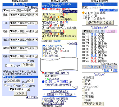「駅探★乗換案内」は、時刻表と連動した乗り換え案内サービス。今回、よく利用する駅や路線を登録できる「MYデータ」を新たに実装したほか、表示内容のカスタマイズや検索条件を追加、時刻表のユーザーインターフェイスの改善などを行った。