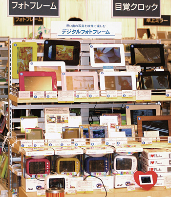 雑貨を扱うロフト池袋店では、デザイン性が高い20・30種類のDPFを扱う。なかでも、「電源を落とすと鏡になる製品や、携帯電話の画像が取り込める製品の人気が高い」(神田氏)という。購入者の目的は主に自宅用と贈呈用で、1万円前後の製品が売れ筋だ。