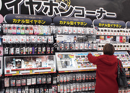 家電量販店で販売されているイヤホンでは、「iPhone」や携帯オーディオ・ゲームなどのモバイル端末機器が普及し、これらの派生機器として需要が高まっている。電車内で音楽などの視聴時に漏れる音が騒音として社会問題化していることなどを受け、最近では、「カナル型」と呼ぶ遮音性の高い製品が“売れ筋”となっている。2009年後半からは、主要メーカーがこぞって低価格モデルやデザイン性の高い製品を投入したことで、この傾向に拍車がかかっている。