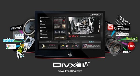 DivX TVでは、メーカーを問わずにインターネット対応機器でオンラインメディアコンテンツを楽しむことができる。パソコンや外付けの専用機器を設置する必要がなく、デジタルテレビやBDレコーダー、ゲーム機、携帯電話などに実装すれば、ホームネットワーク上でデジタルメディアコンテンツをストリーミングし、すべてのDivXビデオを含むさまざまなビデオ形式を再生することが可能だ。