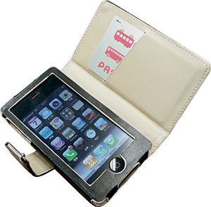 量販店向けモデル「フリップスタイルレザーケース iPhone 3GS/3G」。ICカードが収納できる