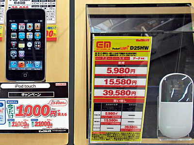 さらに、ビックカメラ全店で、「Pocket WiFi」を無線LAN対応のデジタル機器と同時購入し、イー・モバイルと契約を結んだお客様に、初期費用を割り引くキャンペーンを展開している。