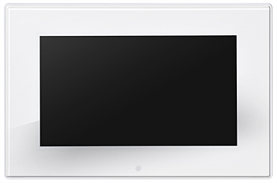 電子POP「GH-EP7UDシリーズ」(ホワイト) 800×480の高解像度7型ワイドカラー液晶を搭載した電子POP。2GBの内蔵メモリのほか、SD/SDHCメモリカードやメモリースティック、USBメモリに対応し、動画や静止画、音楽の再生が可能となっている。1か月使用しても約11円の低消費電力設計で、自動パワーオン/オフ機能を搭載する。