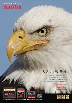 | キャンペーン広告のメイン写真「ハクトウワシ」の撮影現場では、サンディスクのメモリカードが使われた |