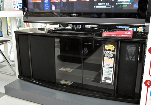 こうした戦略で販売成果をあげているアイテムの一つがラック型ホームシアターだ。江戸川店では、テレビ台メーカーのヤマキヨが製造したラックにオンキヨーのサラウンドシステムを組み込んだオリジナルのラック型ホームシアターを販売しており、薄型テレビの購入者に割安で提供している。