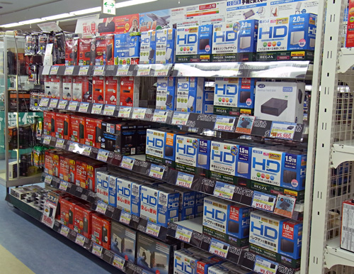 フェイス秋葉原本店 フェイス秋葉原本店とTWOTOP秋葉原本店では、「W杯開幕前から外付けHDDが好調」(ユニットコムの小川正敬PCショップ統括部マネージャー兼秋葉原地区統括マネージャー)という。売れ筋は、GB単位でみるとお得感のある1-1.5TBの大容量モデルで、「PCだけでなく、液晶テレビとつなげて番組を録画するために買っていく人が多い」という。
