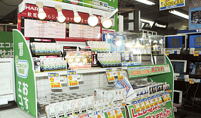 また、店頭で最もスピーディに交換できるのは、LED電球。エコポイントを2倍で利用できる人気商品だ。「LED電球はまだ高価なので、ポイントを利用して1個か2個、試しに交換する人が多い」(浅野アドバイザー)という。