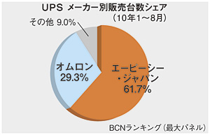 (3)【市場の今後】UPSは、IT業界の動向に合わせて、製品展開や販売方法を柔軟に変化させていかなければならない製品だ。例えば製品については、現行の蓄電池である鉛は有害物質を含むので、環境への配慮から、業界全体で代替品を使った製品が必要になってくるだろう。代替品としてリチウムイオン電池があるが、現在は鉛と比べておよそ3倍の価格になってしまう。どう解決していくか、業界全体で取り組んでいかなくてはならない。(井上真希子)