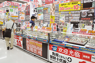 同店で中国人に最も人気のある製品はデジタルカメラ。免税フロアの販売金額の約6割を占め、とくにコンパクトデジタルカメラが売れている。次いで腕時計が約2割で、日本メーカーの製品に人気が集まっている。残り約2割は理美容品と調理家電で、それぞれ約1割だ。理美容品は、ツメ切りや磁気ネックレスなどの比較的単価の安い製品、調理家電は炊飯器が売れ筋だ。