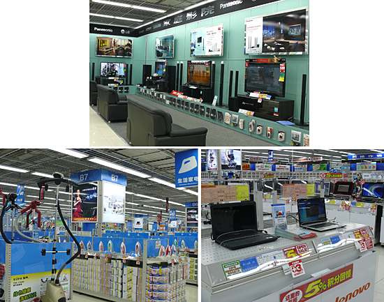 約150万点の商品を揃え、テレビやPCなどジャンルごとにコーナーを設置 展示や販売は、メーカーごとにコーナーを設けて販売する中国方式ではなく、「あくまでも日本での販売スタイルを踏襲する」。テレビやPCなど、ジャンルごとにコーナーを設置し、店員が販売するスタイルを採る。これが中国で受け入れられれば、流通に変革が起きる可能性がある。しかも、「中国と日本は近い。壁があるとすれば言語だが、言語を超えた接客をすれば、誰でも喜んでくれる」と、価格ではなくサービスで勝負する考えを示している。これが、一宮社長のいう「新しいタイプの店舗」だ。