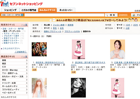 セブンネットショッピングが目指すのは、「ソーシャルコマース」だ。1月18日に行ったサイトのリニューアルでは、ユーザーが自分のお気に入りの商品の紹介や評価を掲載する口コミ投稿サービス「みんなのクチコミ」を強化した。新たに100名程度の有名人を加え、また「芸能・スポーツ・専門家」「メーカー・生産者」「金融・保険業」「主婦・主夫」「教育・学生」など、業種別の分類から自分と似た人を見つけやすくした。こうした機能によって、「この人が推薦している本を読みたい」「同じモノを使ってみたい」といった共感や“つながり感”から生まれる購買意欲の掘り起こしを狙う。