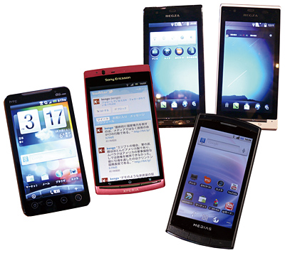 KDDIは、「来年度(11年3月期)は、製品の半数以上をスマートフォンにする」(田中孝司社長)方針だ。4月に発売する新たなスマートフォンは、高速通信回線のWiMAXを搭載した「htc EVO WiMAX ISW11HT」。田中社長は、「YouTubeやニコニコ動画が大好きでよく見るが、動画が途切れずにきれいに見ることができる。もう戻れない感覚」とアピールしている。ソフトバンクモバイルは、依然根強いiPhoneに加え、「Androidでも業界No.1を目指す」(孫正義社長)と、iPhoneとAndroid搭載機の両輪で主導権を握ろうとしている。