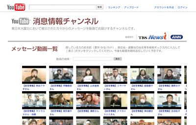 被災地に住む家族や知人の安否確認にも、PCやスマートフォンが多く活用された。グーグルは、東日本大震災に関する情報をまとめたサイトを開設。被災者の安否情報を写真撮影してウェブアルバム「Picasa」にアップできる「避難所名簿共有サービス」を提供している。YouTubeは、「YouTube 消息情報チャンネル」を開設し、被災者がメッセージ動画で、遠くにいる家族や知人に映像を通じて現状を伝えられるようにした。テレビでも同様のことができるが、放送時間は限られ、限界がある。動画などで大容量データを遅延なく送受信できる高速ブロードバンドのインフラ、PCやスマートフォンなどクライアント端末の充実が情報ツールとして大きく貢献したわけだ。また、NTTドコモとソフトバンクモバイルが、それぞれ公衆無線LANサービスを無料開放していることも、連絡を取るため手段として大きく寄与している。