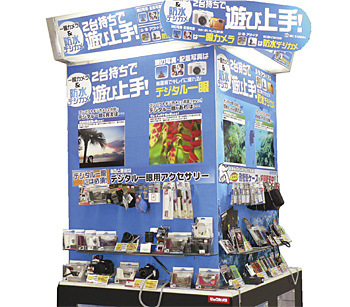 旅に欠かせないアイテムの一つであるデジタルカメラコーナーでは、今年初めて防水デジカメコーナーを設置した。沖縄などのきれいな海に行くというお客様や、『昨年防水のカメラを持たずに出かけて後悔した』などの声を受けて、夏の旅行に向けての露出に力を入れている。