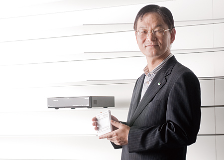 Q. iVレコーダーの新製品「VDR-R2000」は、前モデルから大幅に機能が向上した。開発のコンセプトを教えてほしい。 A. たとえれば、超高級マグロが回転ずしで食べられるようなイメージ。つまり、レコーダーとしてど真ん中の製品に仕上げたうえで、多くの人に使っていただきたいという願いを込めて、低価格を打ち出した。正直いって、採算は度外視している。250GBのHDDや、地上・BS・110度CSデジタル放送のダブルチューナー、長時間録画、DLNAのホームネットワーク対応など、最新機能を満載している。また、独自のアルゴリズムで、録画番組履歴から自動でオススメ番組を表示する機能や、連続ドラマを2回以上録画すると自動でフォルダを作成するなど、録画の操作性も追求した。