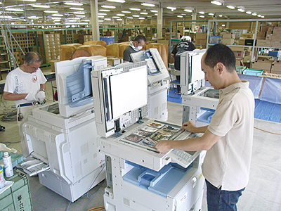 「クオンプ」などグループのリソースを活用したリコーの復興支援「セーブ・ザ・メモリープロジェクト」。写真は、紙焼き写真をスキャナで取り込む作業