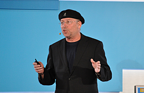 ハイテンションで「ウルトラブック」の優位性を語る米インテルのムーリー・エデン副社長 前日の記者会見では、例年のような新製品のお披露目はなく、昨年から展開している「ウルトラブック」の実績紹介と、今年前半に登場を予定している第三世代のCPU「Ivy Bridge」(開発コードネーム)を紹介。第三世代のCPUを搭載する「ウルトラブック」がもたらす体験を、デモを通して説明しただけにとどまった。そこで、一般来場者が訪れる前に、報道関係者に次世代CPUを搭載した「ウルトラブック」を体験させ、評価させようと考えたわけだ。