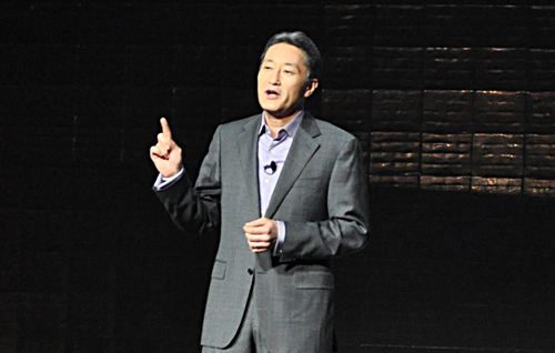 ステージには、ハワード・ストリンガー会長兼社長と平井一夫副社長が登壇。2012年の事業戦略、新製品、新サービスを説明した。発表のテーマは「Play. Watch. Listen. Share.」。ネットワークサービス「Sony Entertainment Network(SEN)」によって、ソニーの複数製品が連携することを訴えた。