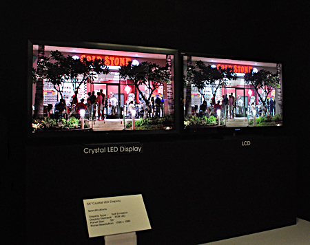 テレビでは、北米向けのGoogleTVやネットワークメディアプレイヤーなどに加えて、自社開発を続けてきた55V型の次世代LEDディスプレイ「Crystal LED Display」を紹介。従来の液晶ディスプレイの画質と比べて、高コントラスト、高色域、高速応答性などを実現した。(デジタル&家電ライター・コヤマタカヒロ)