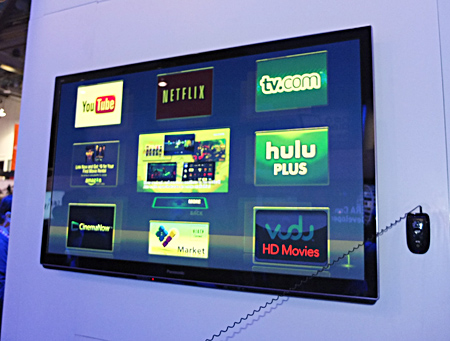 「Smart VIERA」コーナーではスタッフに熱心にたずねる来場者の姿も 「Smart VIERA」がネットワーク機能「ビエラ・コネクト」と親和性が高いことから、動画配信サービスをはじめ、ネットサービスとの連動を紹介するコーナーがさまざまな場所に設けてある。(佐相彰彦)