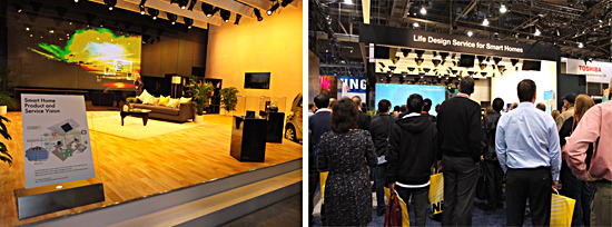 【ラスベガス発】北米で、家庭用エネルギーマネジメントシステムを取り入れた「スマートホーム」ビジネスの本格化や、タブレット端末への注力を宣言した東芝。「2012 International CES」では、スマートホームの展示やタブレット端末のラインアップが充実していた。なかでも多くの人の興味を引いていたのが、スマートホームのデモンストレーションだ。