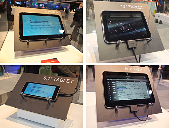 参考出品も含め、タブレット端末4モデルを展示 テレビで注目を集めていたのは、北米で発売となる4K2Kパネルの裸眼立体視3D対応モデル。日本では、「REGZA X3」として販売している。PCの展示は、「ウルトラブック」が中心だった。(佐相彰彦)