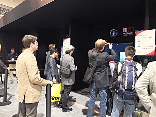 4K2Kパネル採用の裸眼立体視3D対応モデルのコーナーには人だかり