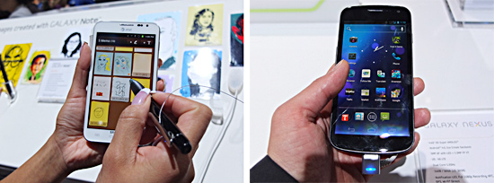 スマートフォンコーナーの「Galaxy NOTE」(左)と「Galaxy Nexus」