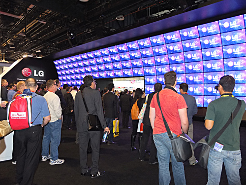 LGブースの入口に貼り巡らしてある3Dテレビ