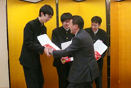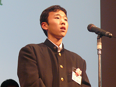 OBCの和田成史社長 受賞者を代表して、宮城県工業高等学校の高橋翔哉さんは、「東日本大震災で、宮城県は大きな被害を受けた。そのなかで、インターネットが不安を取り除いてくれた」と、被災体験から考えたことを述べ、「これからも、ものづくりに励み、ITを発展させていきたい」と抱負を語り、会場から万雷の拍手を浴びた。
