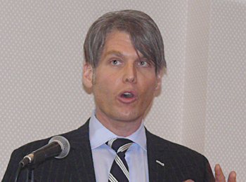 米クラウドエンジンズのダニエル・プッターマンCEO ユーザーには、クラウドエンジンズの5GBのオンラインストレージサービス「Pogoplug Cloud」を無料で提供。さらに3月31日までに「Pogoplug Mobile」を購入したユーザーに対して、1年間無料で20GBの容量を提供するキャンペーンを実施する。(佐相彰彦)