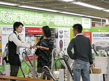 ヤマダ電機のLABI1日本総本店池袋では「クリーナーお試し実演コーナー」と接客でわかりやすく提案している