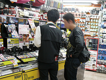 ビックカメラの池袋東口カメラ館は、カメラ専門店としてお客様から高い評価を受ける店舗。その評判は、プロ向け機材などの専門性の高い商品の品揃えが充実していることだけではなく、接客にまで及んでいる。同店には、写真撮影が趣味で、道具としてのカメラにこだわりのあるお客様が来店することが多い。これに応えて、スタッフには豊富なカメラの知識をもち、カメラのことならプロ・アマ問わずに何でも相談できる環境を整えている。とくに、デジタルカメラのトラブルや修理に関しての問い合わせが多いという。