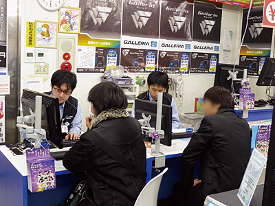 ドスパラ秋葉原本店では、お客様の要望や使用シーンを聞いて最適なパソコンを提供 法人コーナーで1フロアを割いているツクモパソコン本店では、「パソコン専門店は、常連さんたちだけの店と思われがち。しかし当店は法人のお客様も多い。個人・法人を問わず、ホテルとはいかないまでも、お客様が満足する接客を徹底的に実施している」(後藤店長)という。