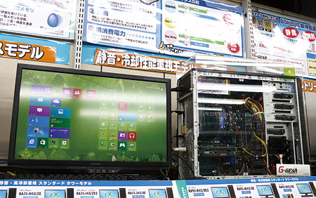 ツクモパソコン本店では、「SSDをユニークに展示したい」(後藤賢志店長)と考えて、最近、パソコン上級者を対象に、マイクロソフトの新OSであるWindows 8とSSDを組み合わせたデモコーナーを設けた。起動などが速いといわれているWindows 8の特徴をSSDがさらに引き出すという相乗効果で、「購入したほとんどのお客様が『一度使ったら元には戻れない。もうSSD以外は考えられない』と評価している」(後藤店長)という。