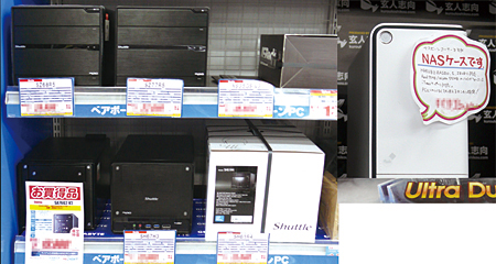 また、ベアキットPCではないが、「最近になって、NASベアキットを購入するお客様が増え、すそ野が広がりつつある印象だ。ファイルサーバーやインターネット専用端末として使っている」(菊池フロア長)という現象が起きている。ホームネットワークの普及でさまざまな端末がネットワークにつながり、家庭内でもデータの一括管理を実現するユーザーが増えている。NASにはもちろん完成品もあるが、「搭載するHDD容量の自由度が高いということで、ベアキットを購入するお客様が多い」(菊池フロア長)という。今後、ユーザー層の広がりが期待できそうだ。