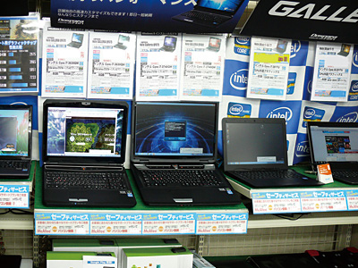 ヤマダ電機テックランド博多本店ではスマートハウス関連のコーナーが人気 ドスパラ博多店では、駅前の活性化でファミリーを中心に来店が増えていることから、「多くの方々の興味を引くために、パソコンコーナーを拡充した」(木村和馬店長)という。自社ブランドのBTO(受注生産方式)パソコン「Galleria(ガレリア)」のコーナーを充実させたことで、パソコンの売上高は前年の1.5倍近くまで伸びているという。
