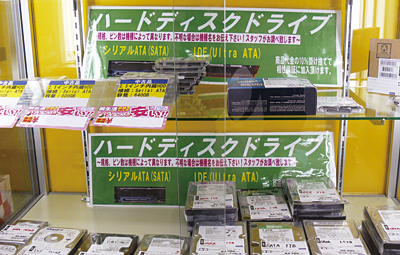 ドスパラ広島店でも、中古のHDDが堅調な売れ行きをみせている。「新品と比べて安いことが売れている一番の要因。デジタル機器に詳しいお客様が、よく品定めをしている」(原輝幸店長代理)そうだ。