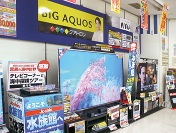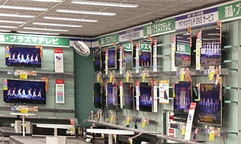 地上デジタル放送への完全移行以後、液晶テレビの販売は厳しい状況が続いているのは、大阪も同じ。しかし、アプローチをかけるサイズを定め、集中して展示するなど、工夫を施すことでお客様を獲得している。