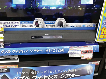 デジタル機器の専門店、上新電機J&Pテクノランドは、液晶テレビとの接続を提案するだけでなく、「スマートフォンと接続できることをアピールするなど、デバイスの価値が高まる提案でサラウンドシステムの購入につなげている」(川井店長)という。この店では、ソニーのHT-CT260などが売れ筋だ。